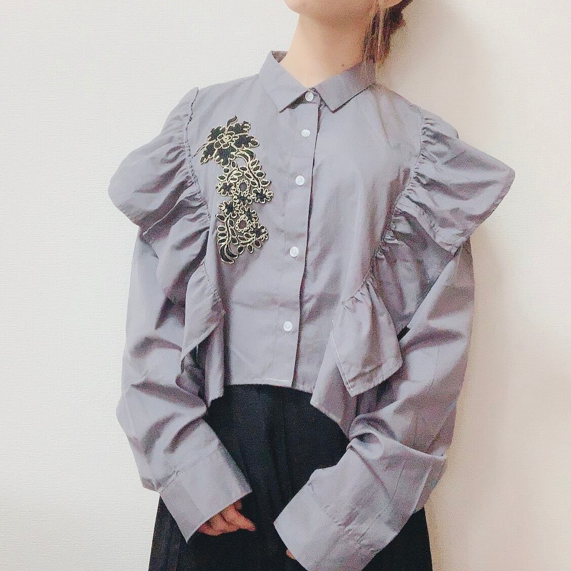 リメイク フリルロングシャツ グレー