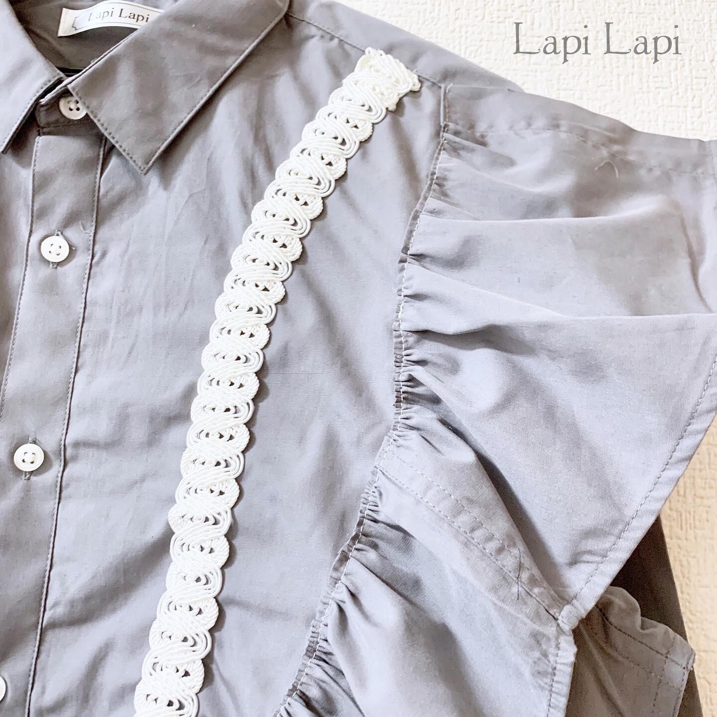 リメイク フリルロングシャツ グレー