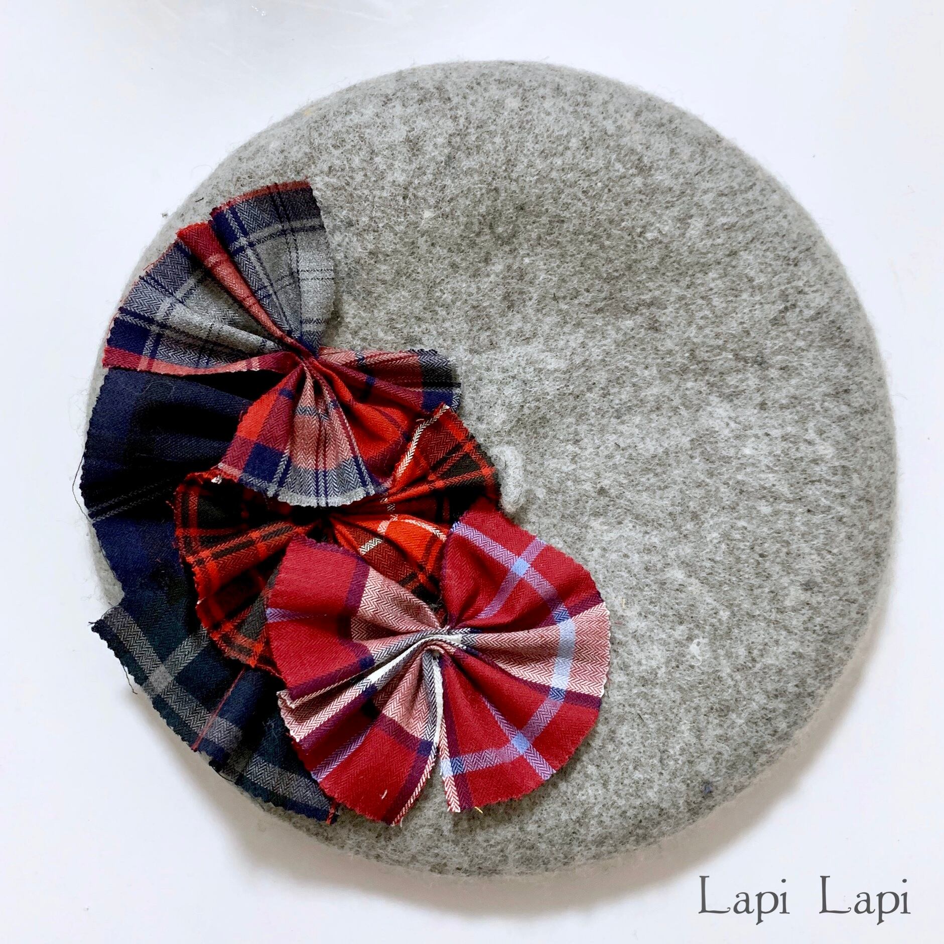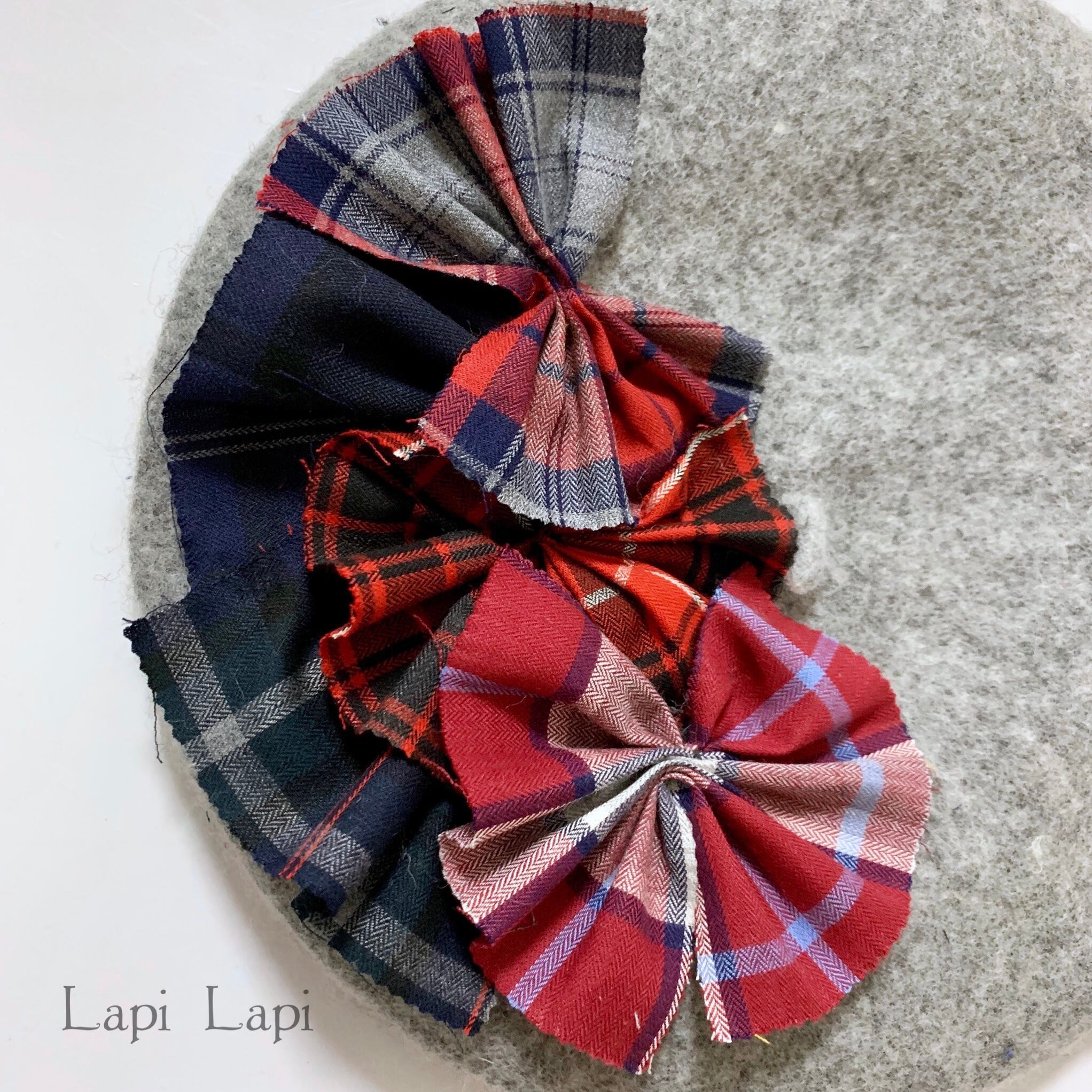 タータンチェックのリボンが散りばめられた世界にひとつだけのベレー帽。