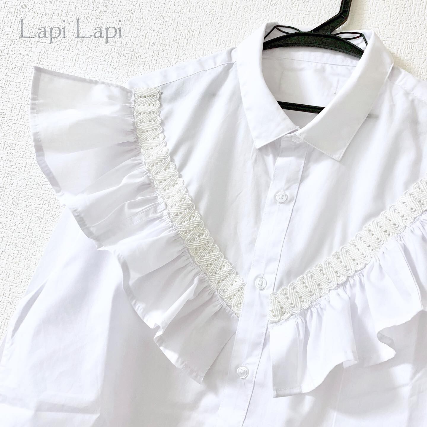 #シャツ #リメイクシャツ #ブラウス #フリルブラウス #フリル #ラッフル #handmade #ハンドメイド #古着 #古着コーデ #韓国 #韓国ファッション #デニム