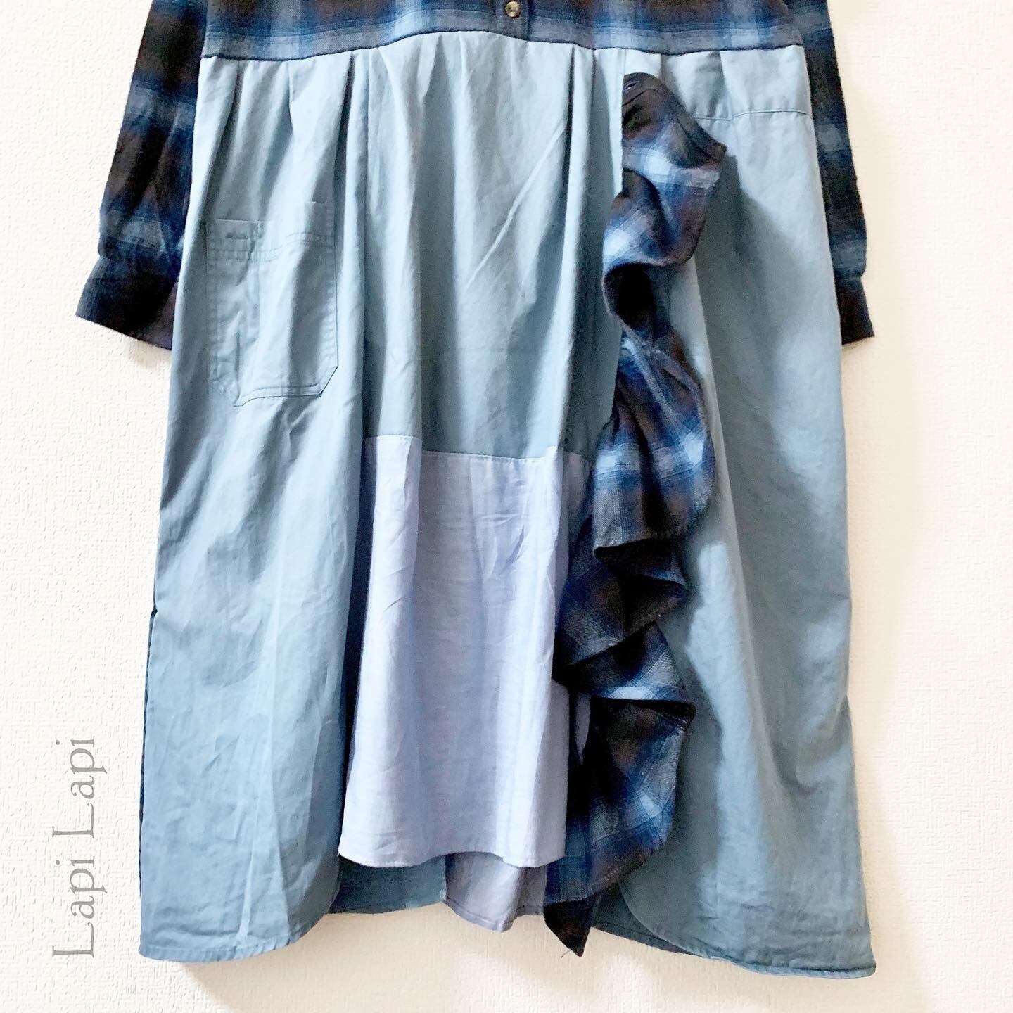 フリルとメンズシャツを組み合わせたスカートが印象的なオリジナルワンピース。
