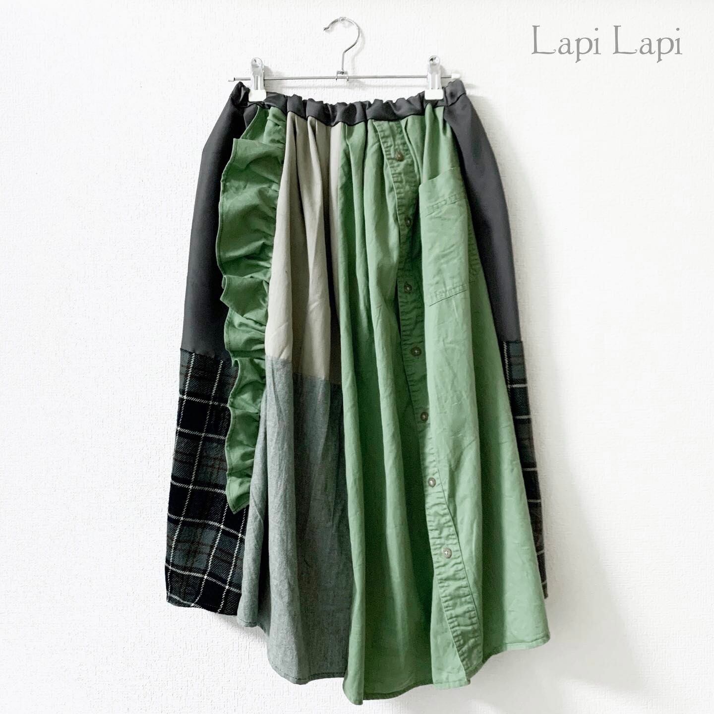 沢山の生地を組み合わせて作られたスカートはここだけの一点物です☆