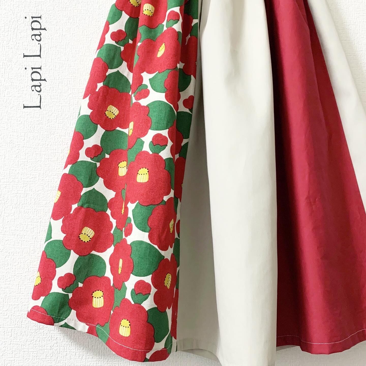 北欧調椿パッチワーク切り替えスカート ベージュ