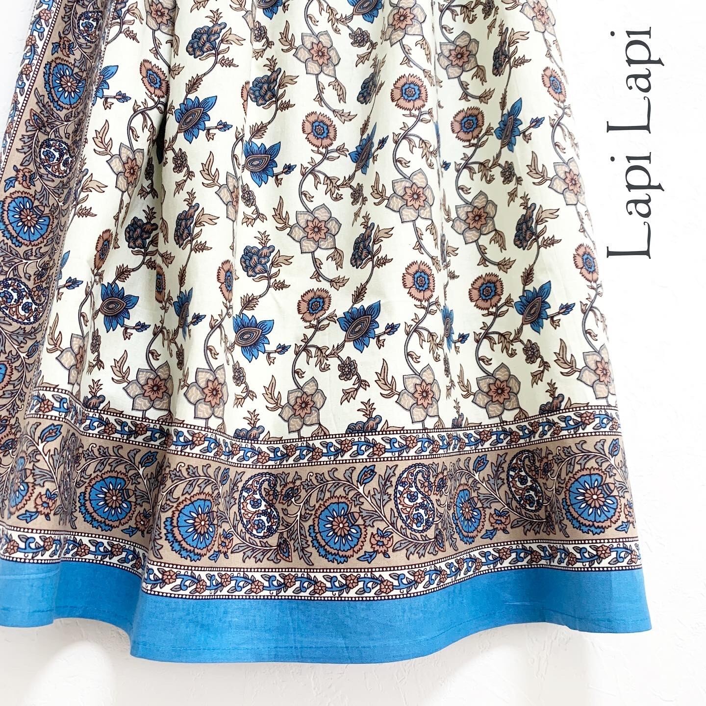 幾何学調の花柄がかわいいインド綿のギャザースカートが入荷しました☆