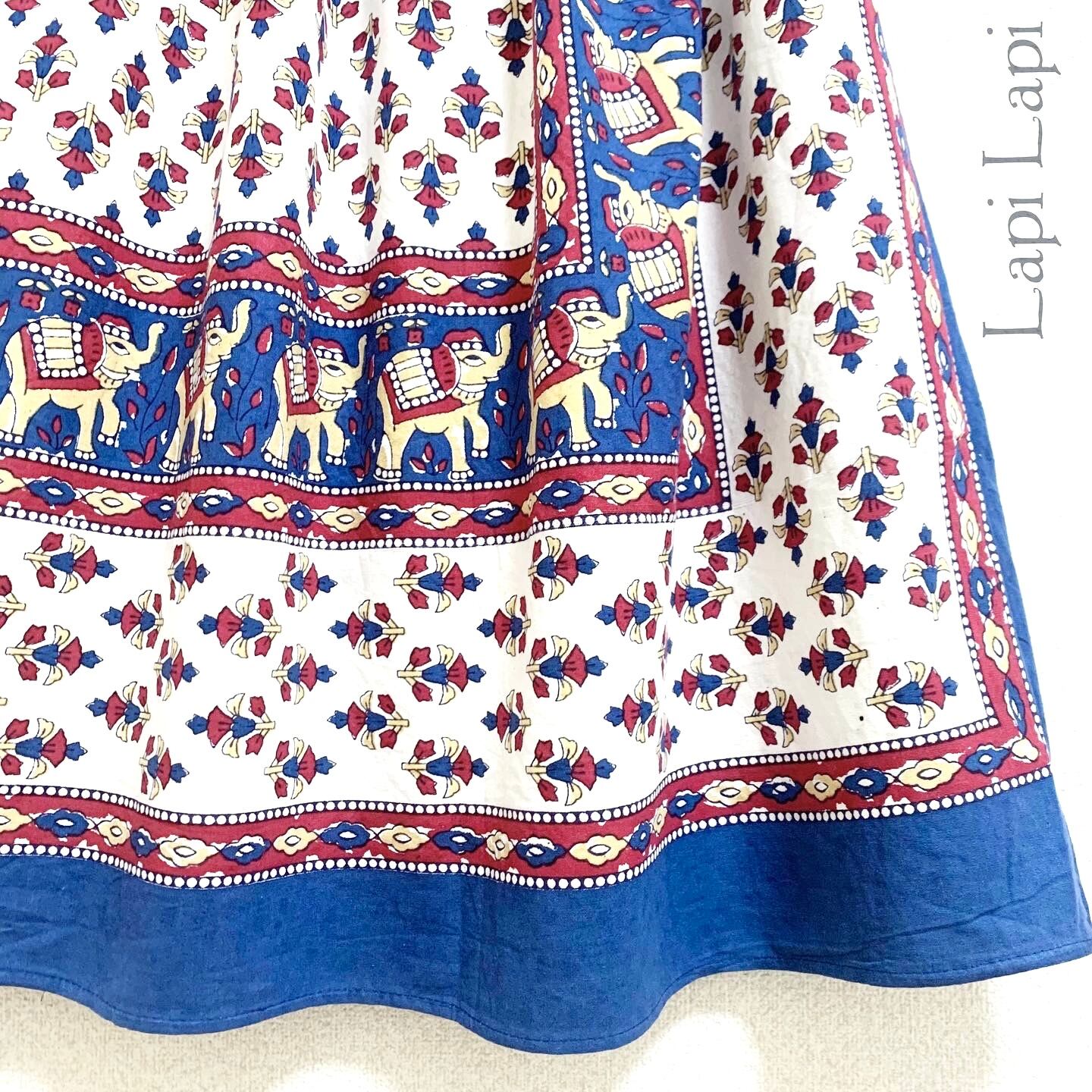 幾何学調の花柄がかわいいインド綿のギャザースカートが入荷しました☆