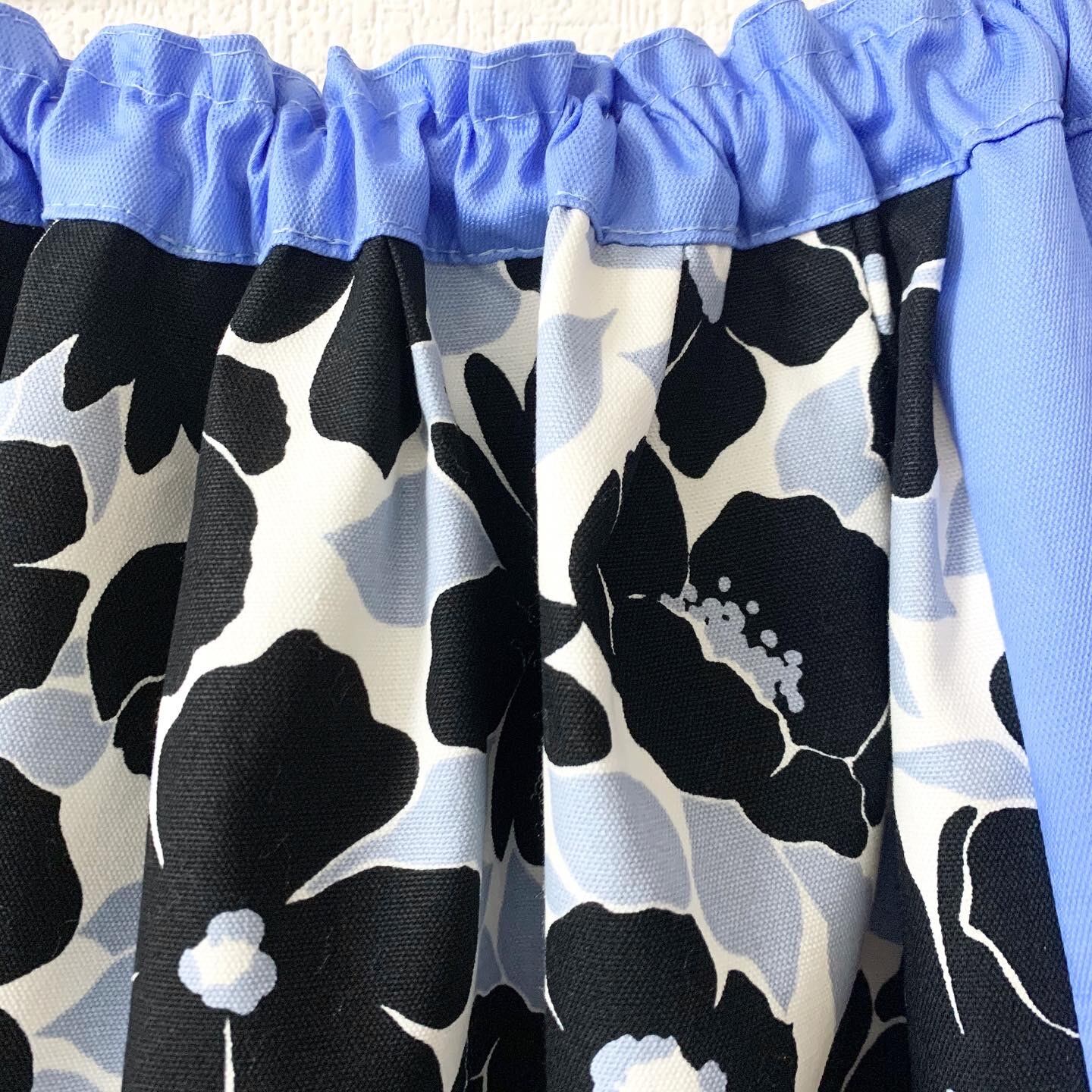 北欧調の花柄が大胆でかわいい、シックなデザインのスカートです。お色も爽やかな水色なのでこれからの季節にぴったりの商品となっております。