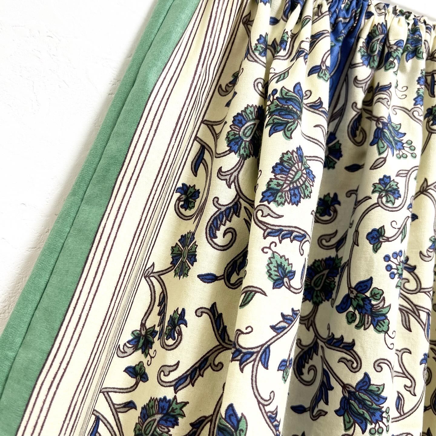 幾何学調の花柄がかわいいインド綿のギャザースカートが入荷しました☆