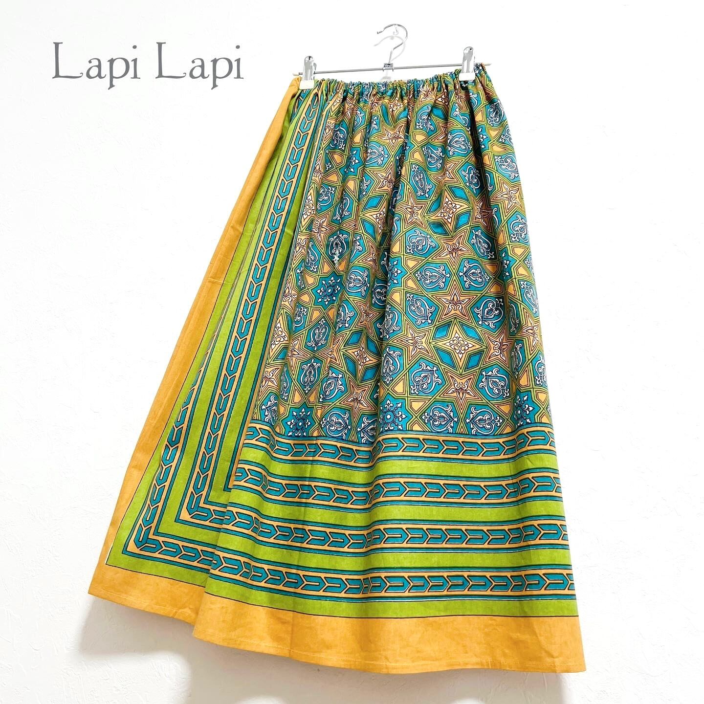 幾何学調の花柄がかわいいインド綿のギャザースカートが入荷しました☆