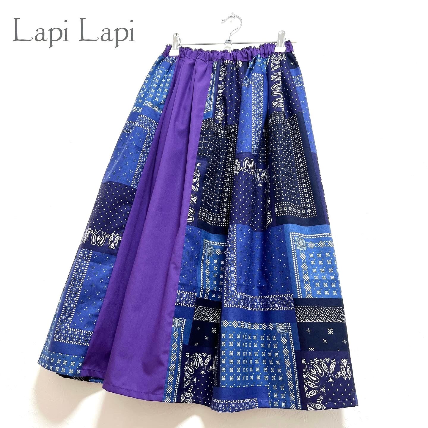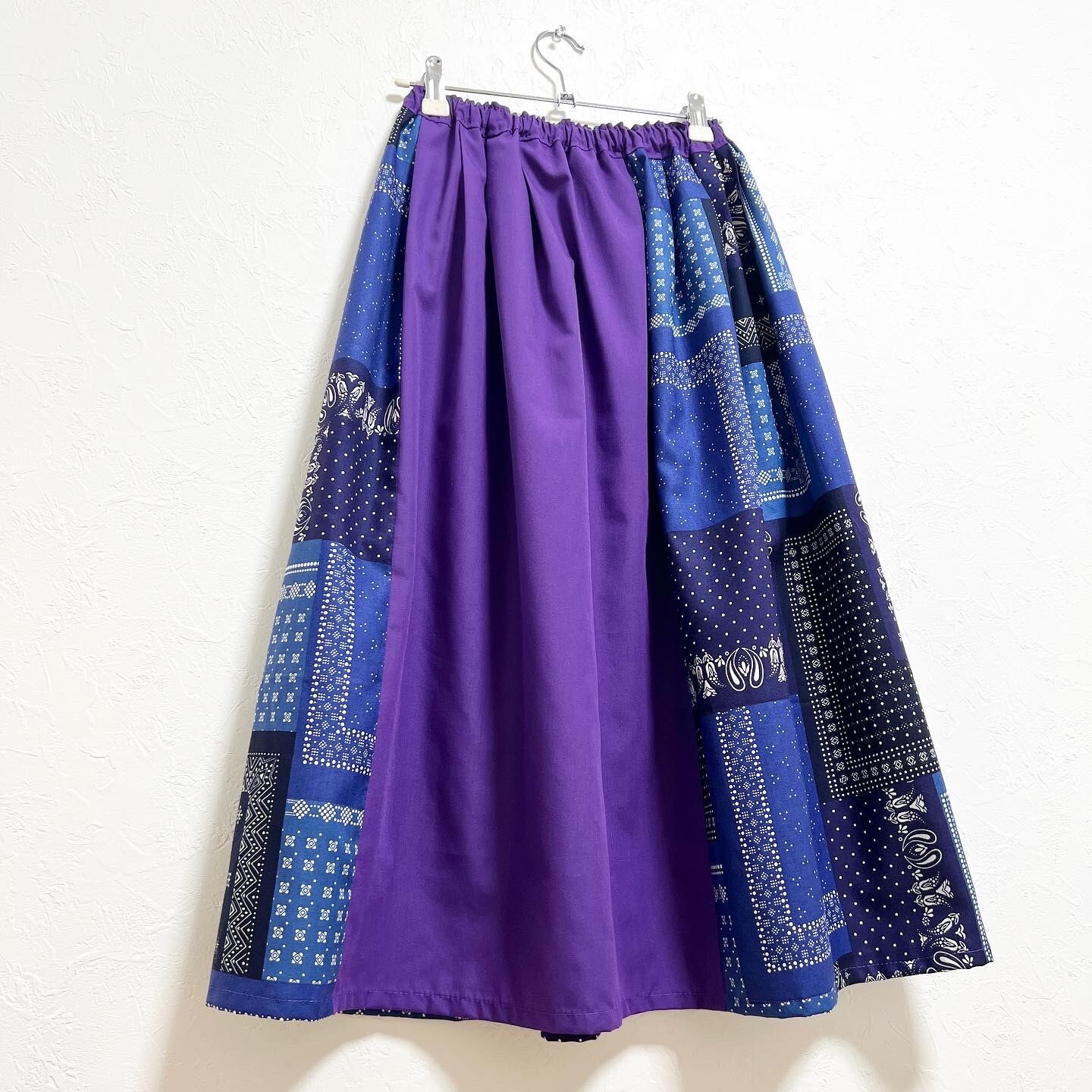 ペイズリー柄パッチワーク切り替えスカート パープル