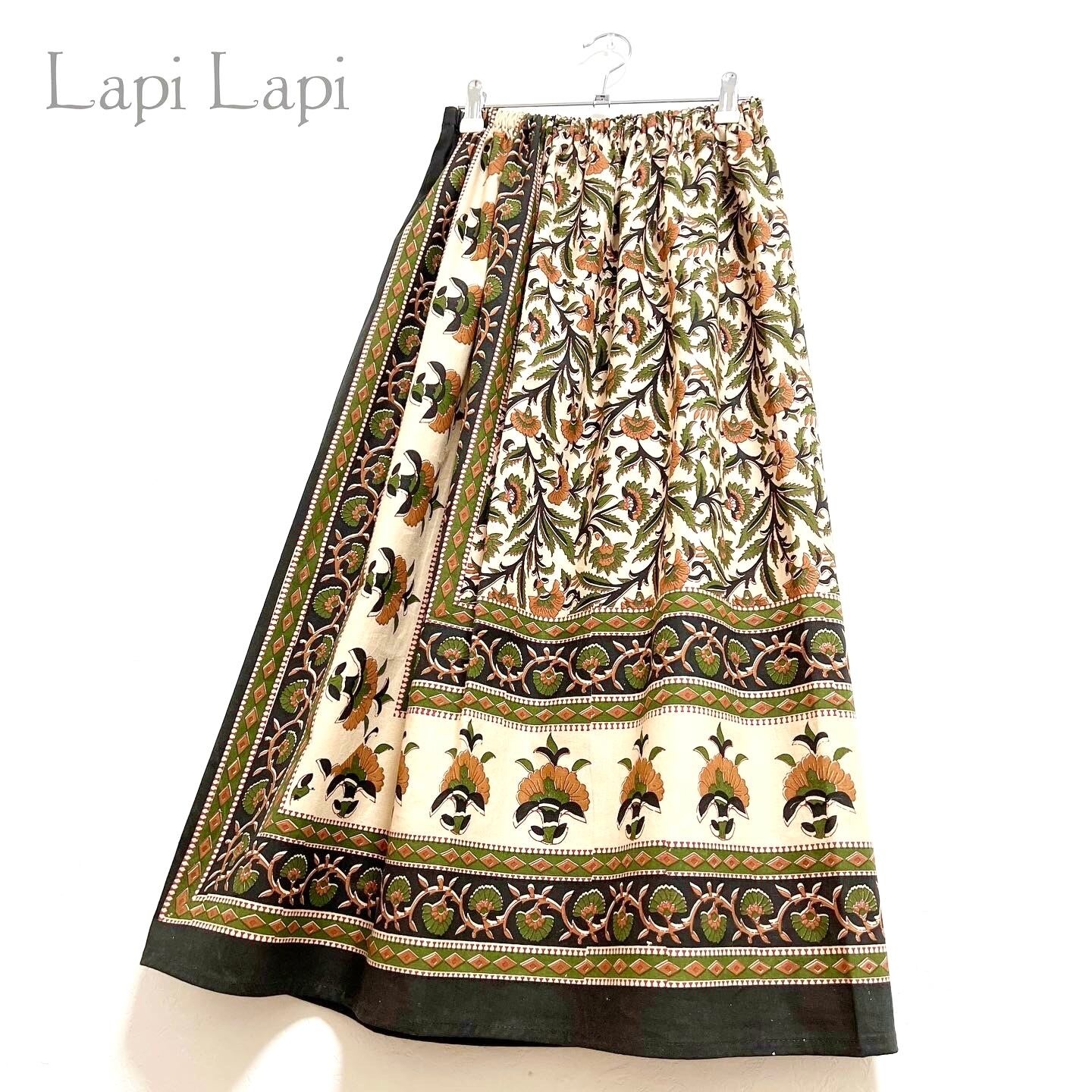幾何学調の花柄がかわいいインド綿のギャザースカートが入荷しました☆