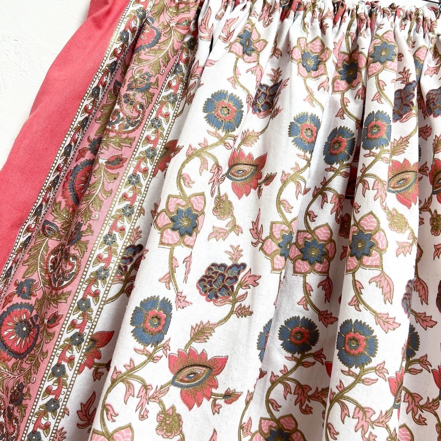幾何学調の花柄がかわいいインド綿のギャザースカートが入荷しました☆